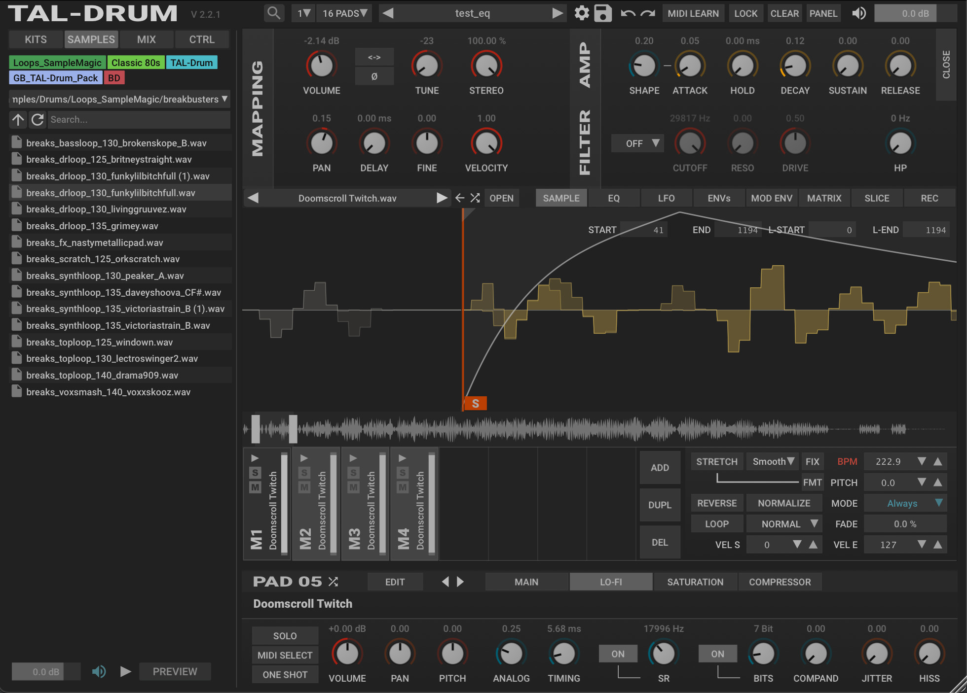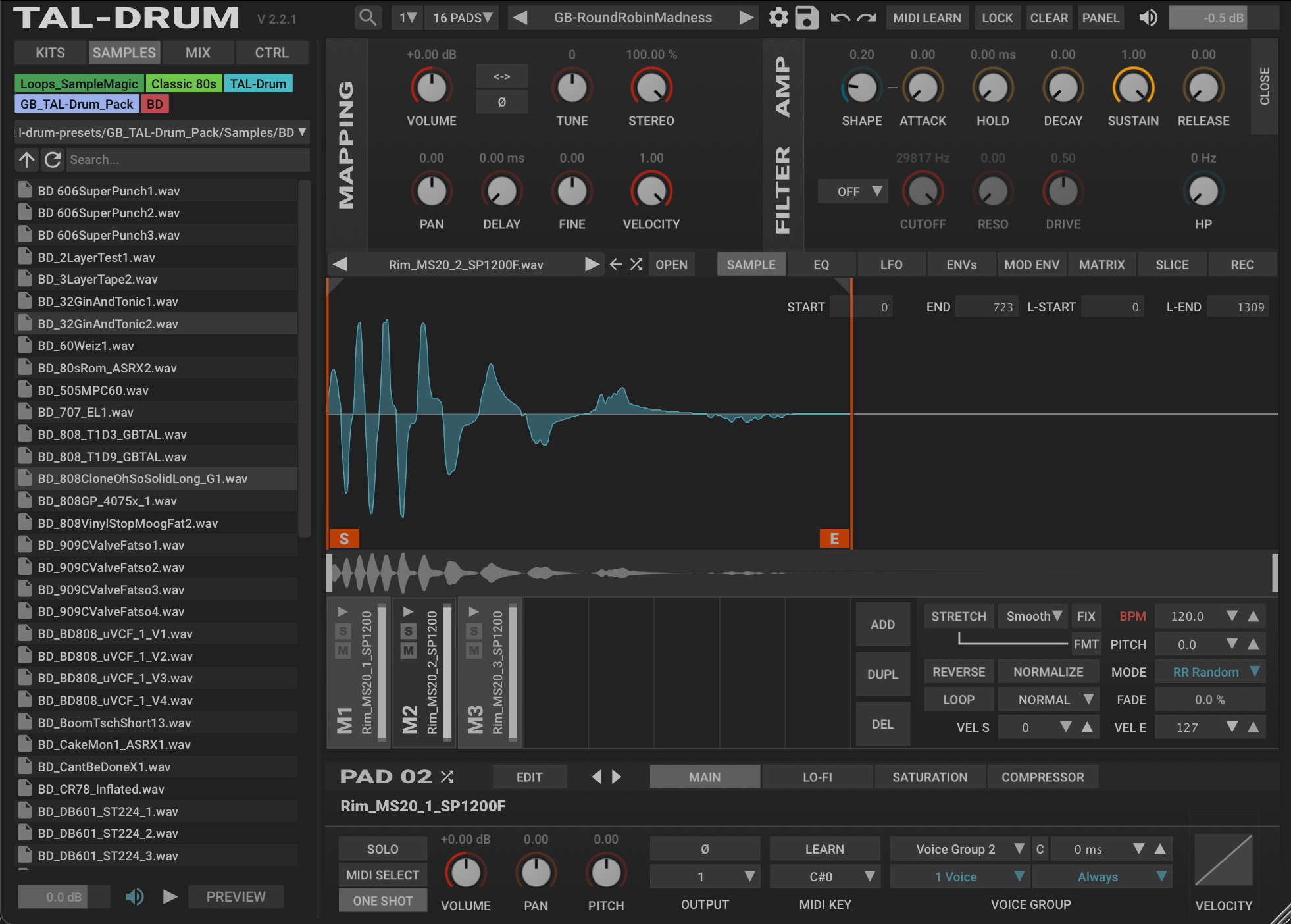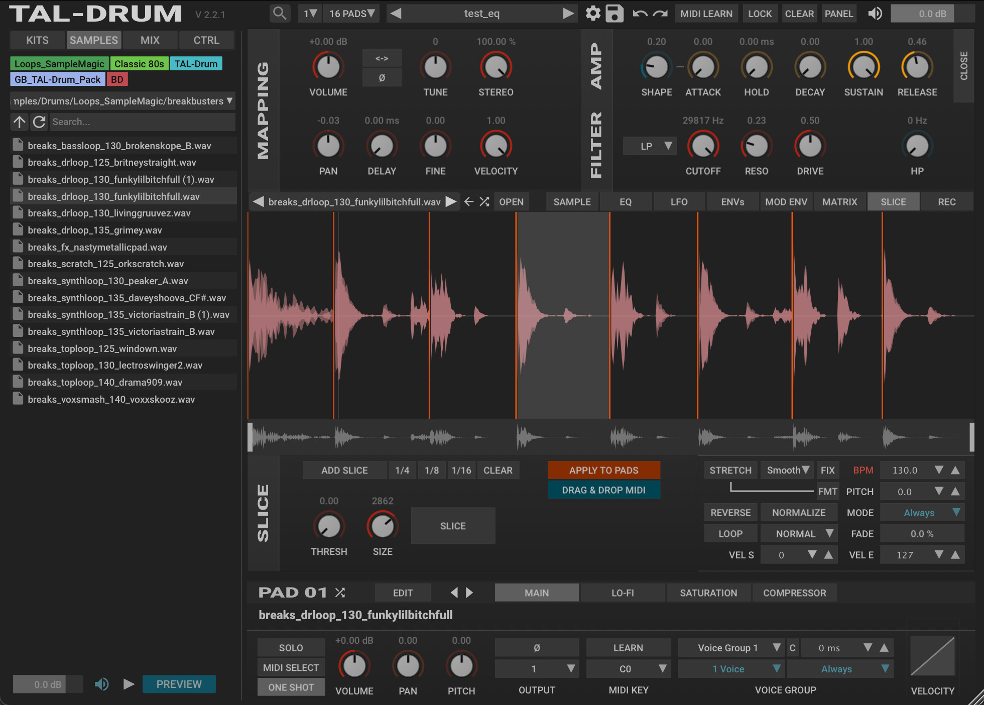 Slice samples and apply the slices to pads with a few mouse clicks. Auto-slice and also slicing in equal slices with a given sample Bpm value is possible.