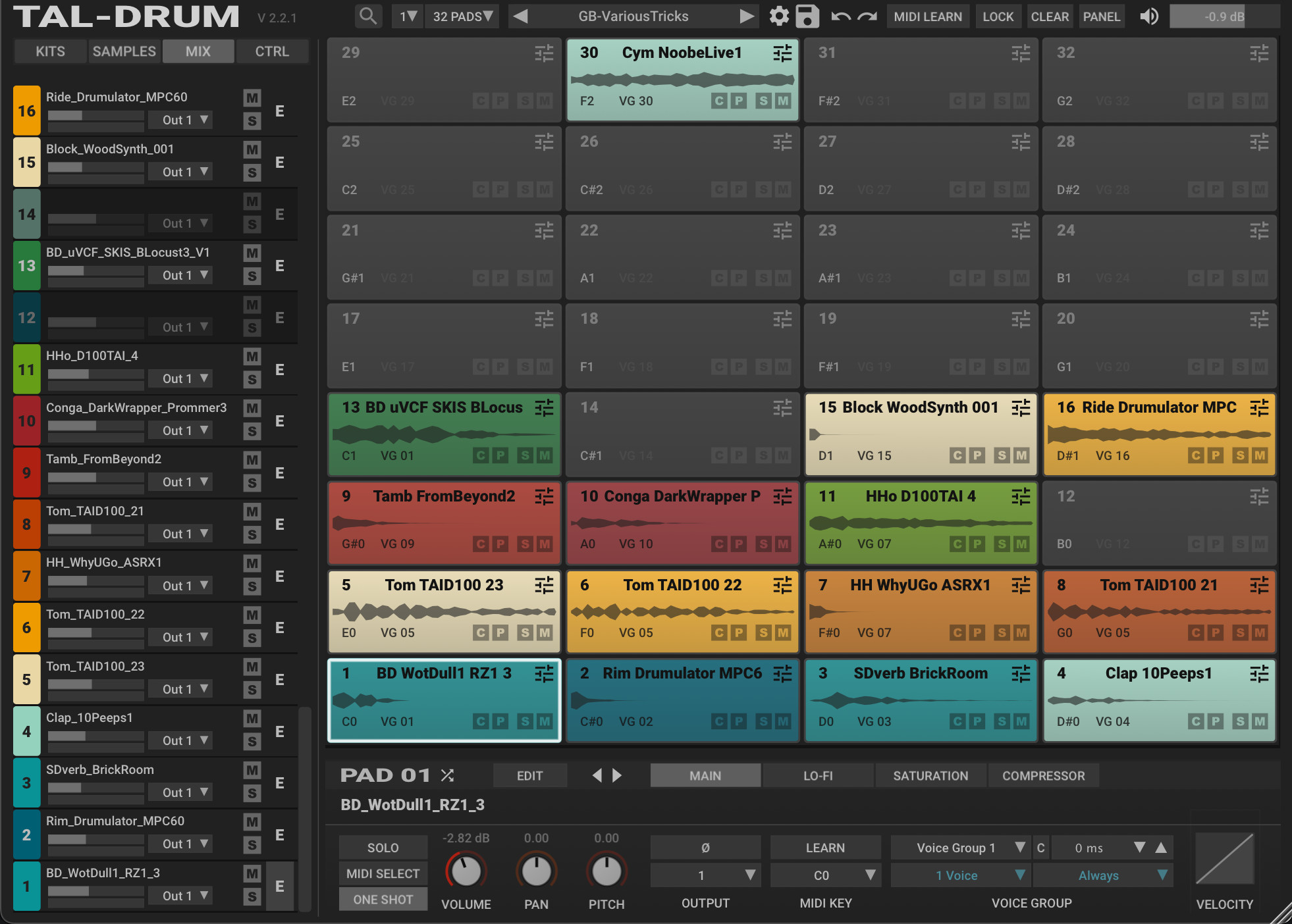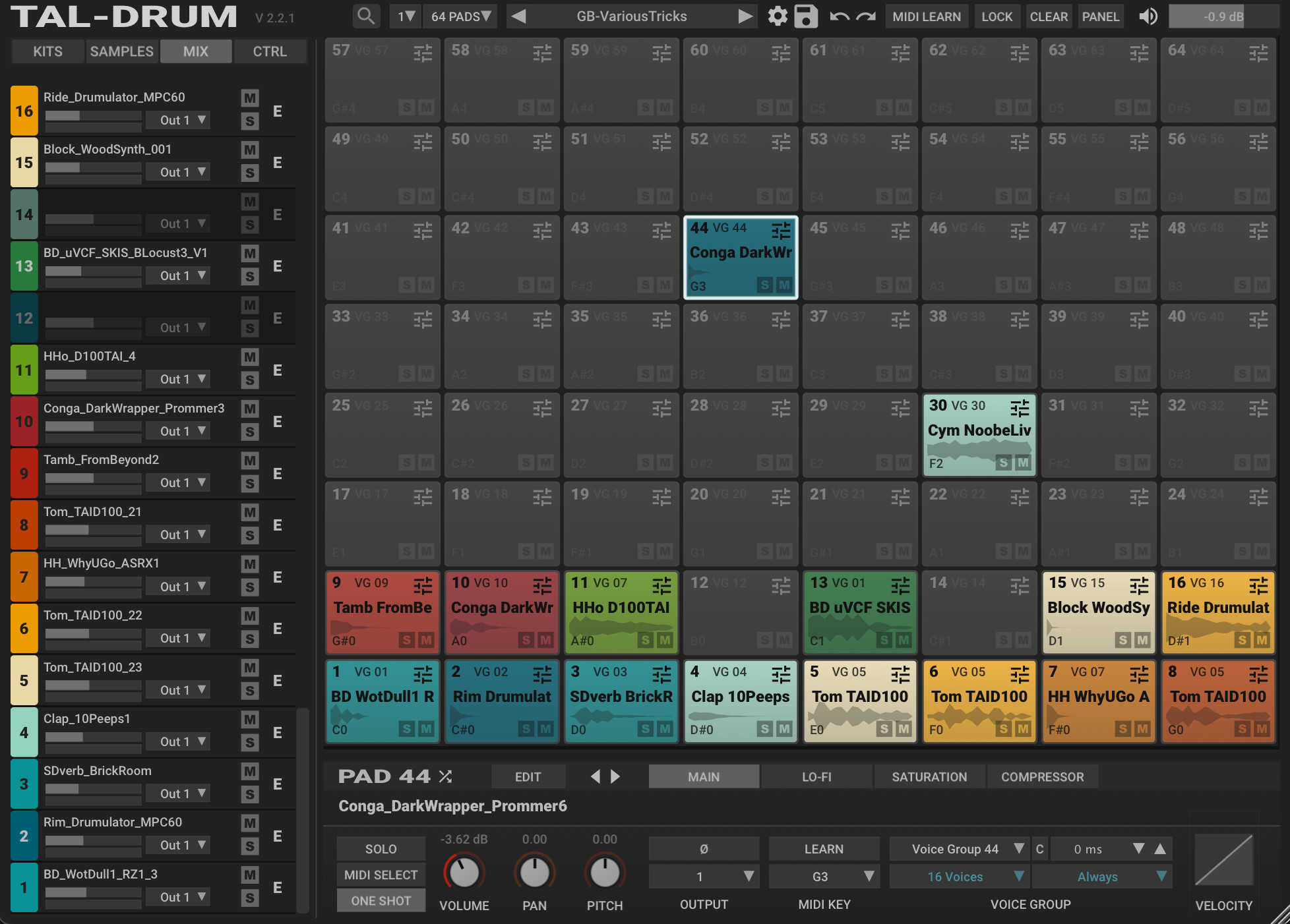 Drag & Drop samples, pads, and mappings for a superfast workflow. Drag a pad while holding CTRL creates a copy of the pad. Select multiple pads or pad-mappings with CTRL click and change them together.